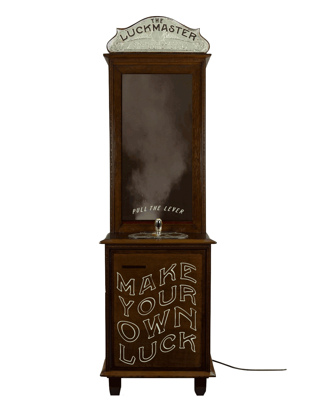 Hidden in the corner of a bar, pull the lever to consult The Luckmaster and receive a coaster with your fortune for the night.